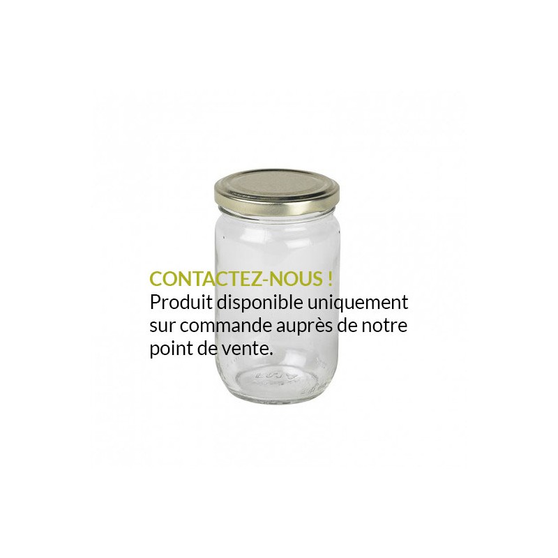 Pot en verre cylindrique destiné à la conserve alimentaire. Un grand classique, indémodable !
