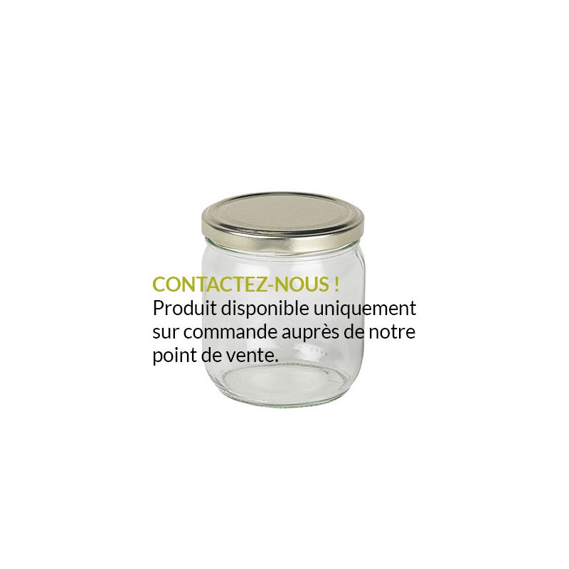 Pot en verre cylindrique destiné à la conserve alimentaire. Très prisé des apiculteurs pour sa faible hauteur (la cuillère reste toujours facilement accessible !)